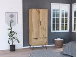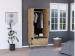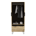 Closet con dos puertas y un cajon, patas metalicas negras, cuatro manijas, soporta 27kg con medidas de: ANCHO 76,4 ALTO 188 PROFUNDO 51
