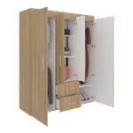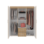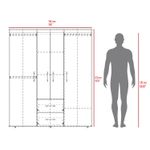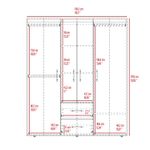 Closet con cuatro puertas batientes, dos cajones, tres tubos pata colgar ropa y amplios espacios de guardado con medidas en cm :ALTO 90 ANCHO 103 FOND