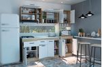 Cocina Bemira NO incluye mesón, no incluye campana extractora, barra de bar, griferia ni elementos decorativos. *Mueble Superior: Con dos puertas abat