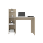 Escritorio 120 con amplia superficie de trabajo, entrepaños para ubicar libros y/o elementos decorativos, combinacion de colores con medidas de: ANCHO