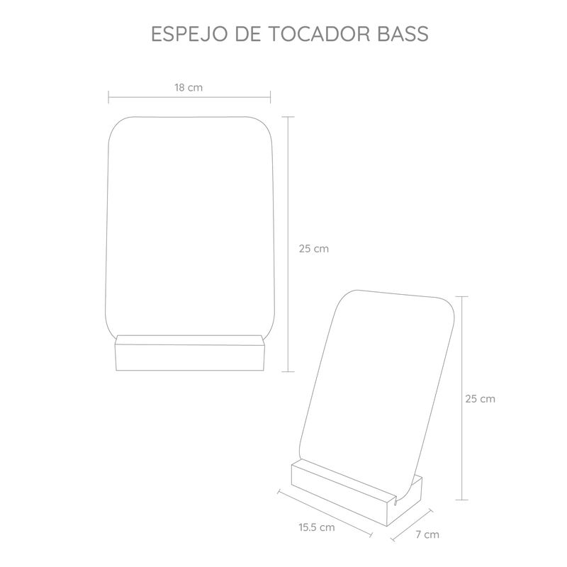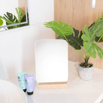 Espejo de tocador mediano recto con bordes redondeados con base madera clara en MDP 30mm