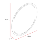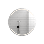 Espejo redondo con diseño en sandblasting en la parte superior e inferior, con luz led, ensamble a la pared con chaflan