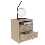 Mesa de noche con superficie para ubicar pertenencias, cajones para almacenar, espacio para lampara, facil de armar con medidas de: ANCHO 40 ALTO 50,7