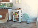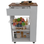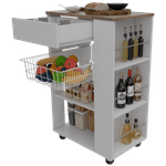Organizador de cocina con canasta para almacenar, un cajon, entrepaños para ubicar alimentos y utensilios de cocina, mesa de apoyo con medidas de: ANC